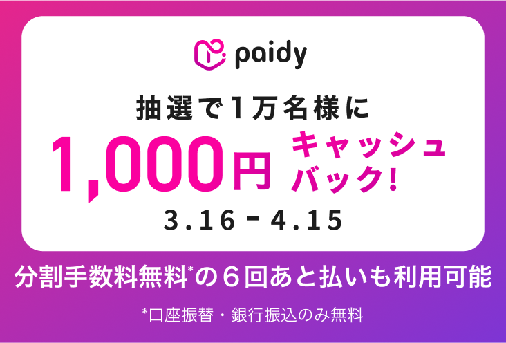 ペイディ 6回あと払いキャッシュバックキャンペーンについて