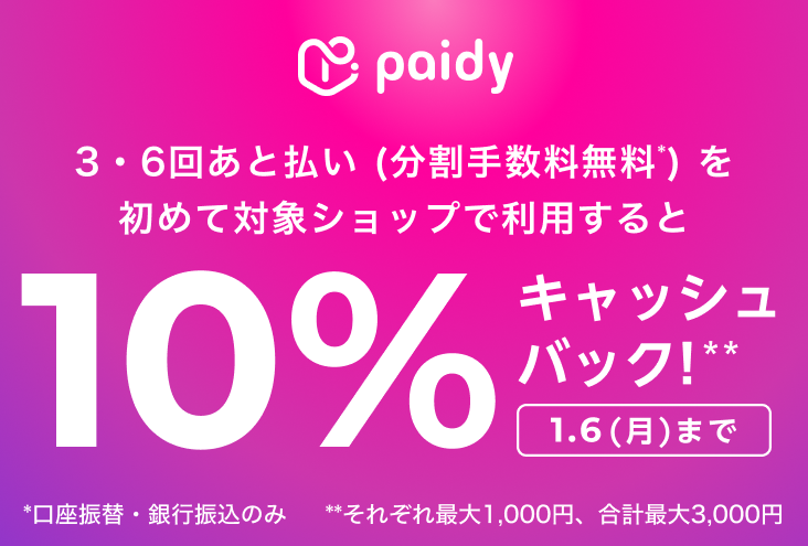 ペイディ 3・6・12回あと払いキャッシュバックキャンペーンについて