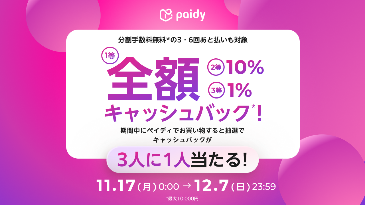 ペイディ最大全額キャッシュバック!3人に1人当たる!キャンペーンについて