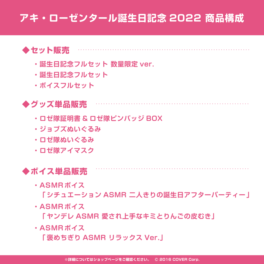 アキ・ローゼンタールの誕生日を記念したフルセット商品です。