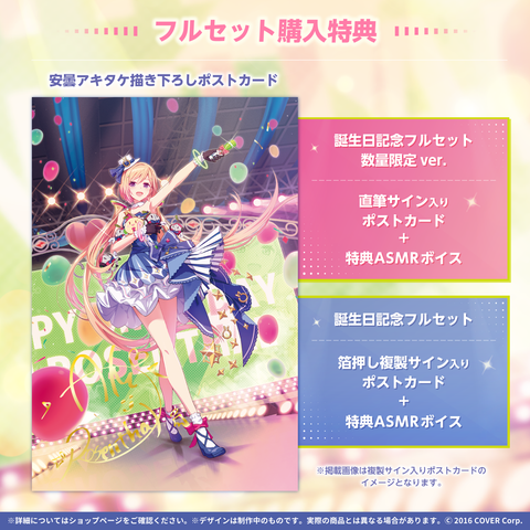 ※特典のポストカードは「誕生日記念フルセット 数量限定ver.」または「誕生日記念フルセット」をご購入いただいた場合のみ付属いたします。
