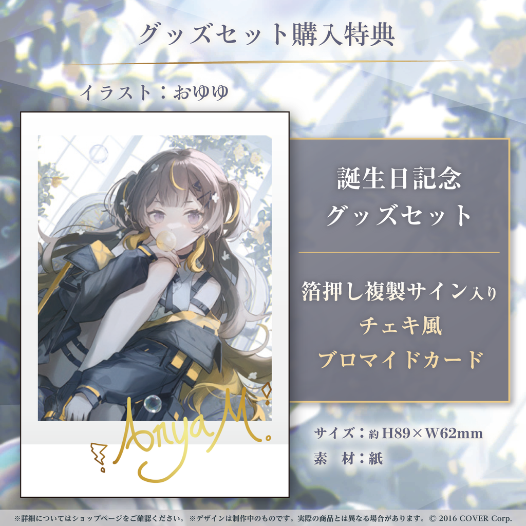 ・特典:アーニャ・メルフィッサ箔押し複製サイン入り「おゆゆ描き下ろし チェキ風ブロマイドカード」