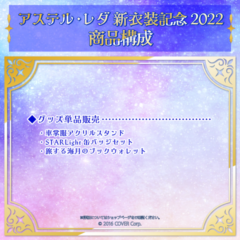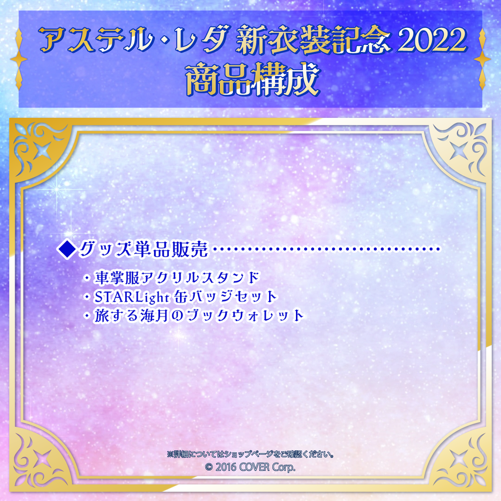 This product is to celebrate the new outfit reveal of Astel Leda from HOLOSTARS.