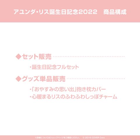 アユンダ・リスの誕生日を記念したフルセット商品です。