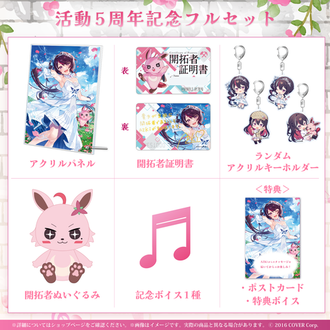 This is the complete set of merch items to celebrate the 5th anniversary of AZKi.