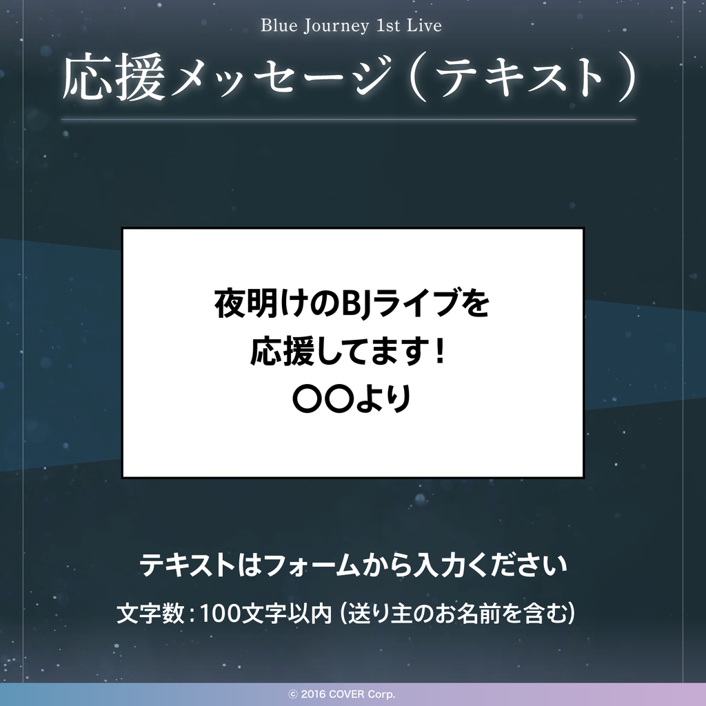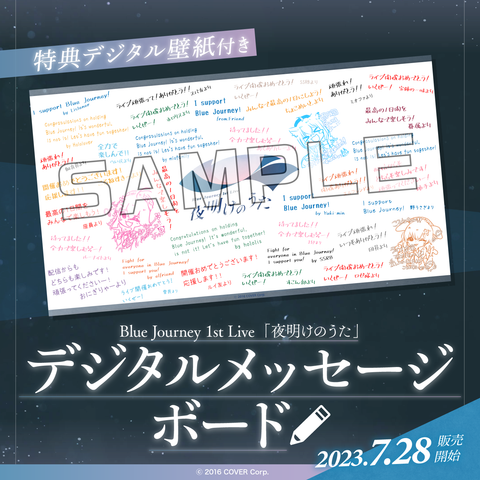 Digital message boards are now available where you can send your messages of support to the talents performing at Blue Journey 1st Live "Yoake no Uta" taking place on September 13, 2023 (JST).