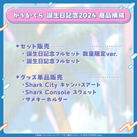 This is the limited edition of the complete set of merch items to celebrate the birthday of Gawr Gura.