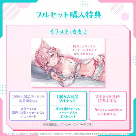 ・Bonus: Postcard with a handwritten autograph and duplicated foil-stamped message from Hakui Koyori. (Illustration: ももこ)