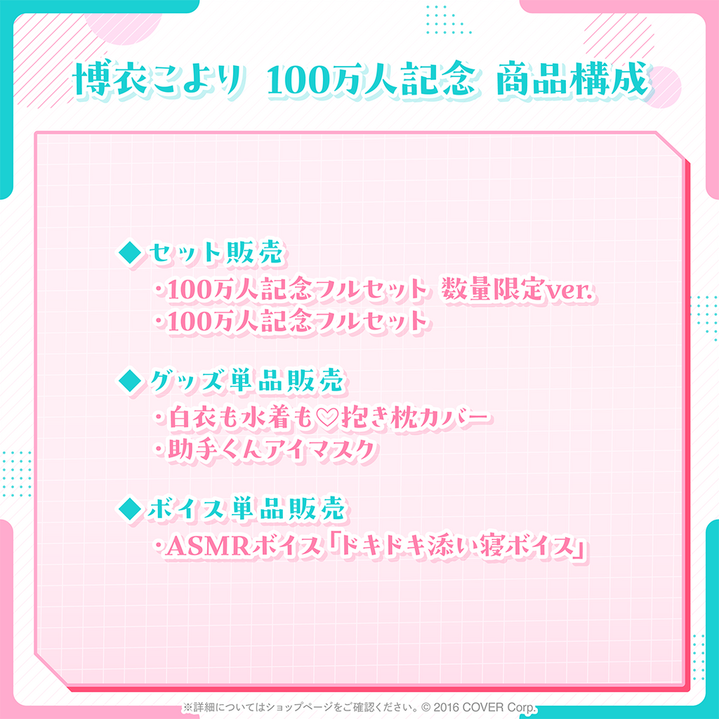 This is the limited edition of the complete set of merch items to celebrate Hakui Koyori reaching 1 million subscribers.
