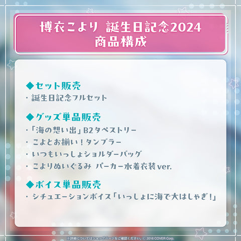 Shipping Period:Estimated around mid-August to mid-September 2024.The merchandise sales for the birthday celebration of Hakui Koyori from hololive.