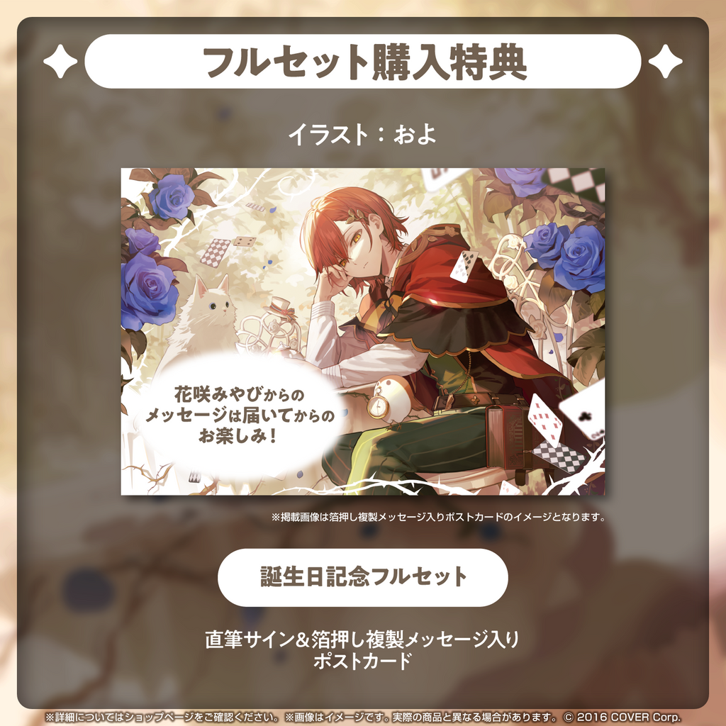 ・Bonus: Postcard with a handwritten autograph and a duplicated foil-stamped message from Hanasaki Miyabi. (Illustration: およ)