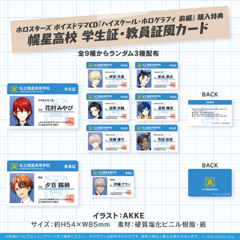 Regarding the "Horohoshi High School ID Card", which is the purchase bonus of the HOLOSTARS Voice Drama CD "High School Holography Vol. 1",