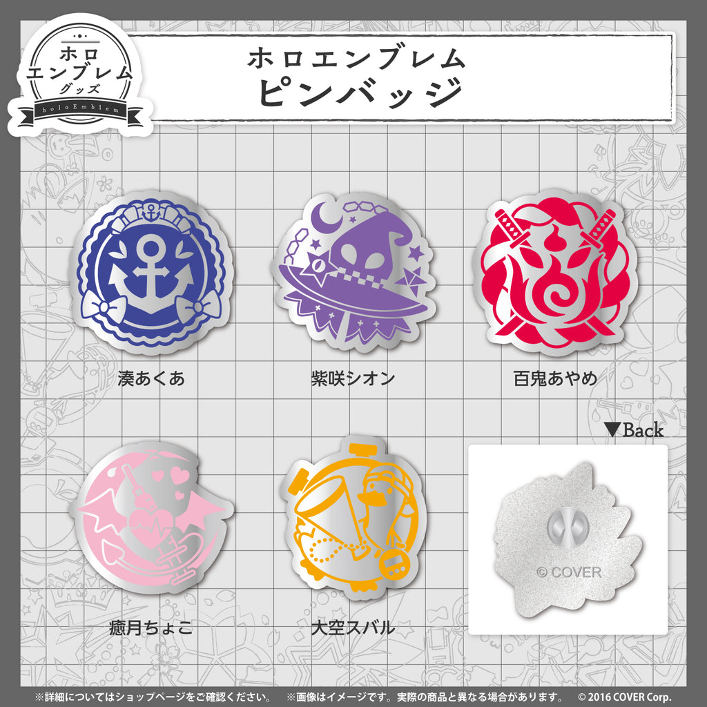 The merch is a series of sundries designed with motifs of the talent belonging to hololive Productions as emblems.