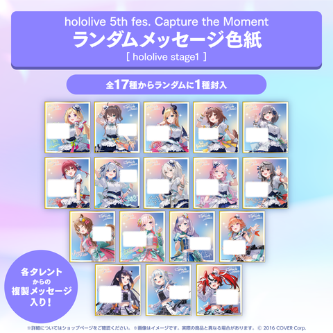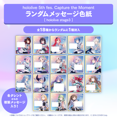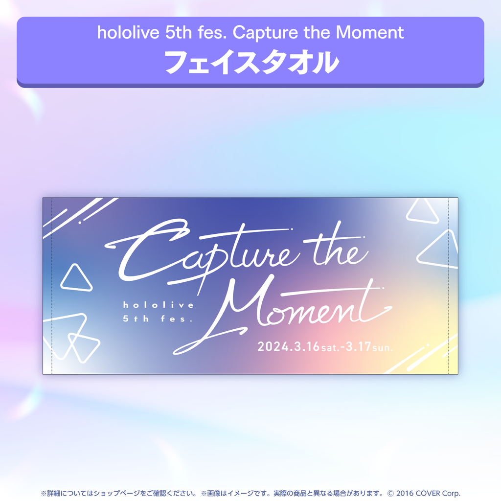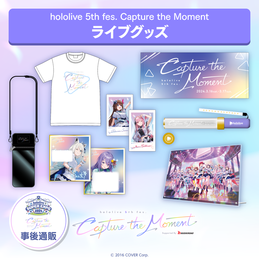 Shipping Period:The shipping will begin in mid-September 2024.The post-event merchandise sales of hololive 5th fes. Capture the Moment, which was hosted on March 16 & 17, 2024.