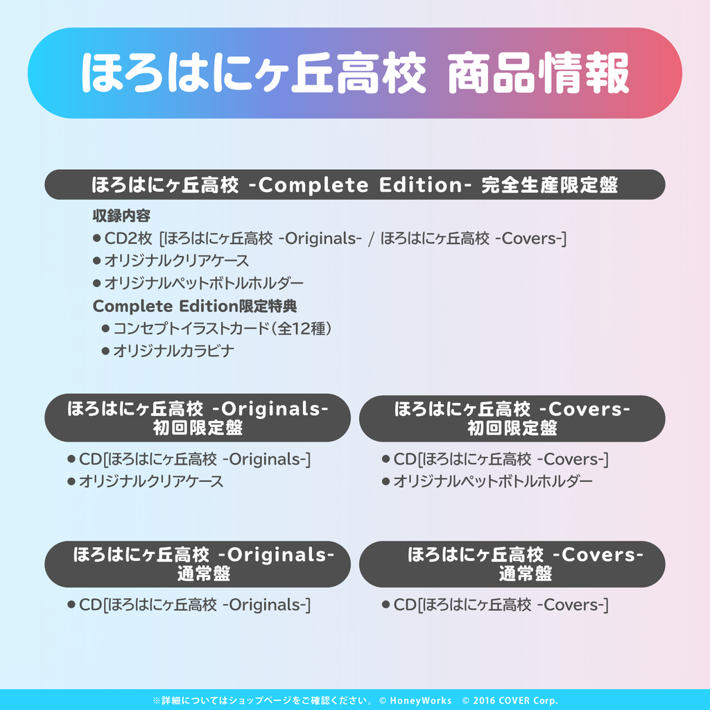 "Holohoneygaoka High School -Complete Edition", a compilation of both albums, is also available for sale.