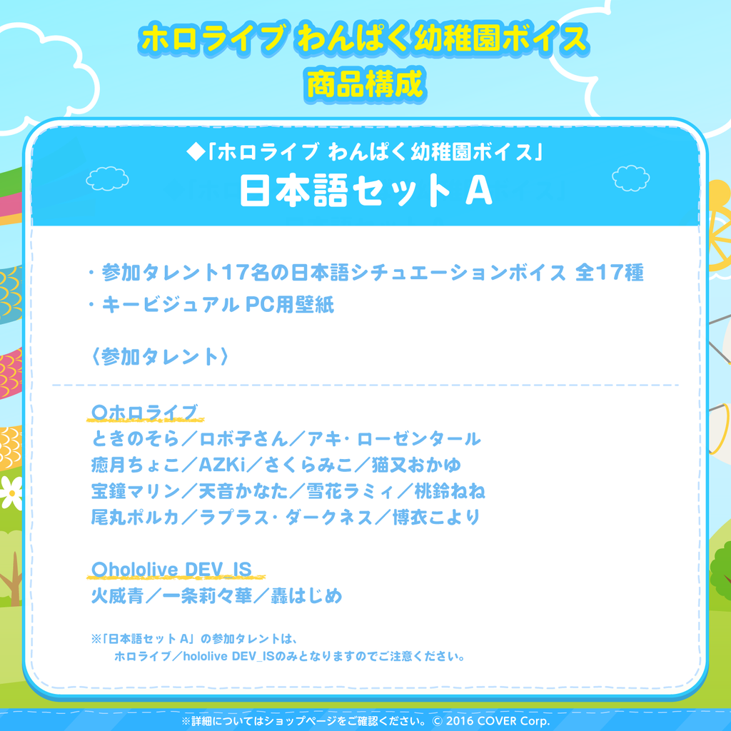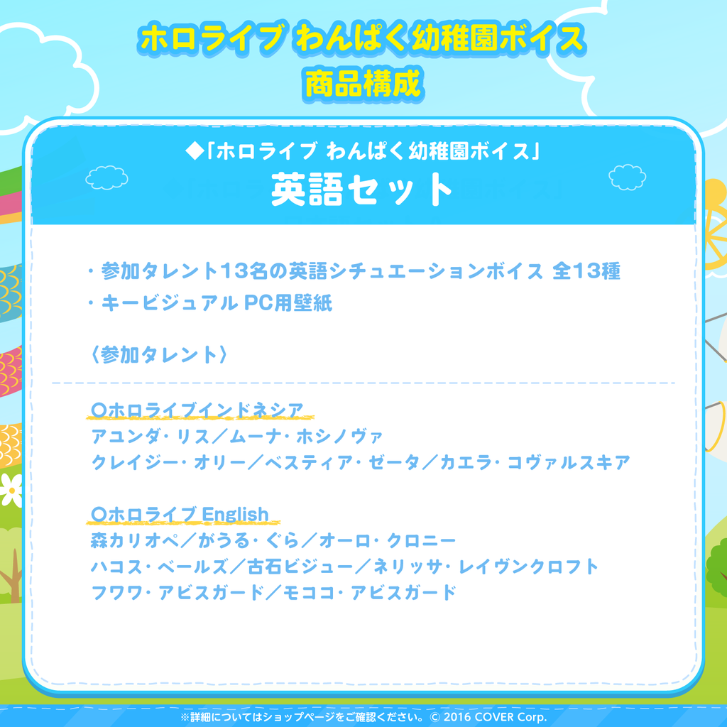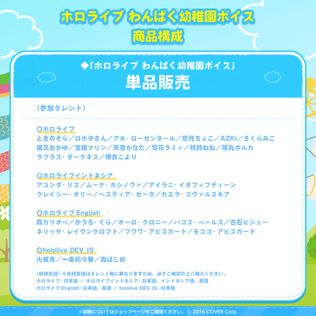 Please share with us your thoughts about these voice packs under the hashtag, "#ホロライブわんぱく幼稚園ボイス".