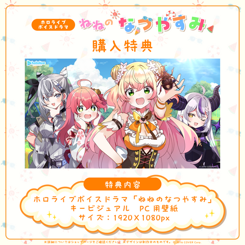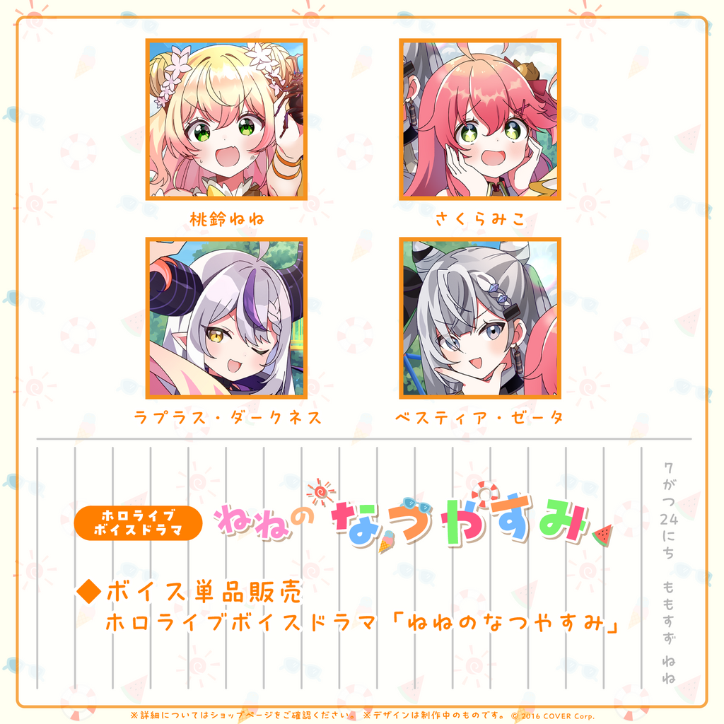 Shipping Period:Generally, the voice packs you purchase will be reflected on your ‘My Account’ page immediately after you complete the order.Please share with us your thought about the voice under the hashtag "#ねねのなつやすみ"!