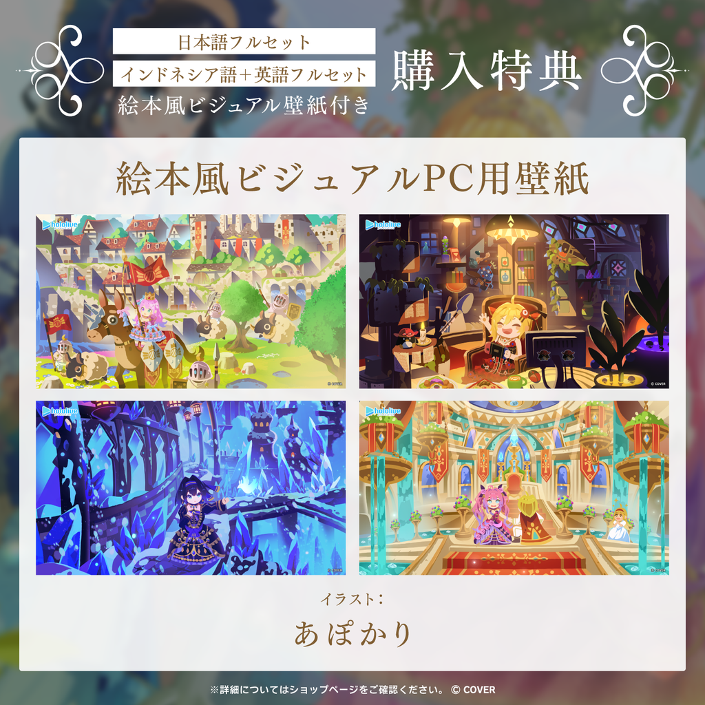 The complete sets come with wallpapers of the talented artist behind the enchanting visuals, each illustrated in a charming storybook style for their story.