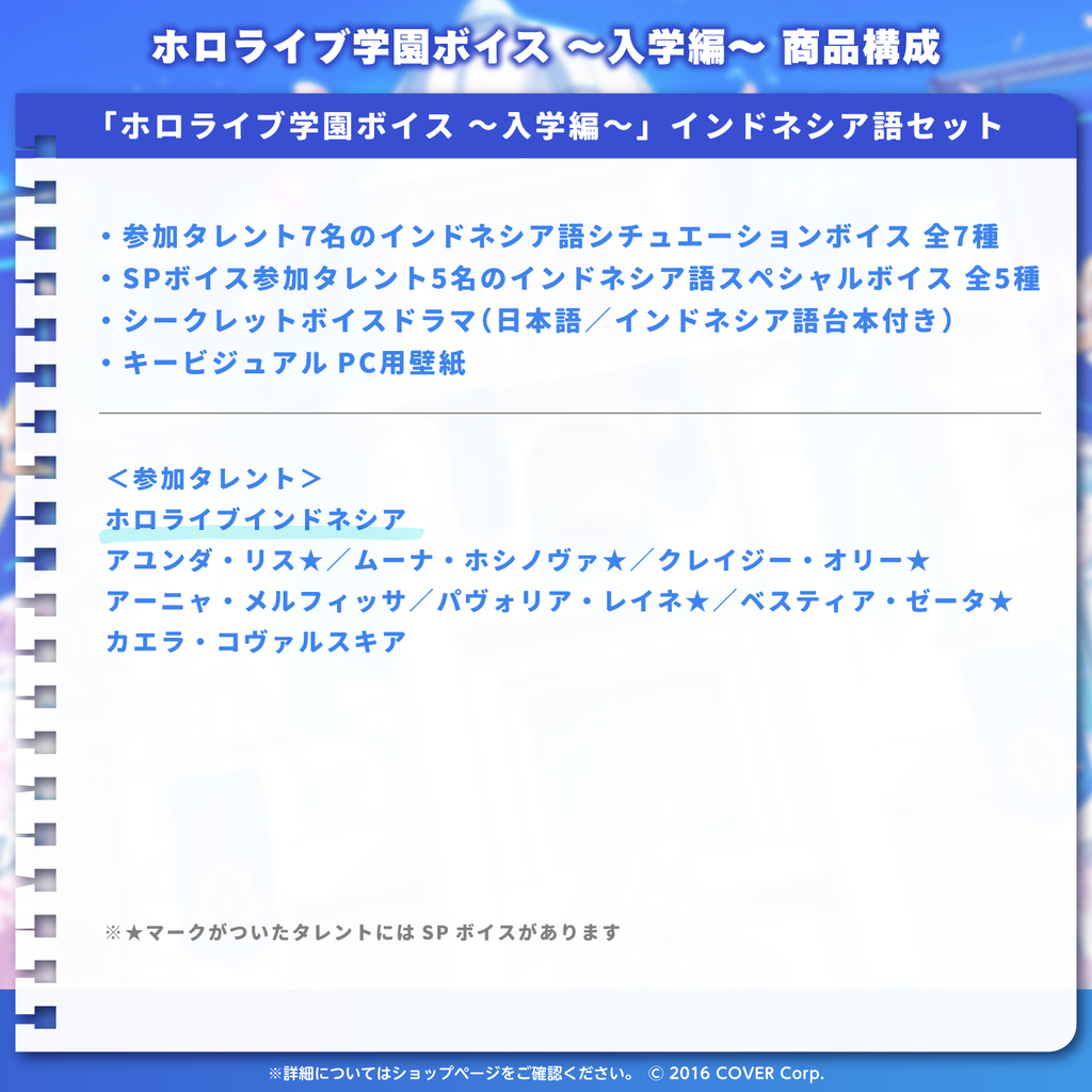 ◇"hololive Academy Voice Pack ~Entrance Arc~" Indonesian Set