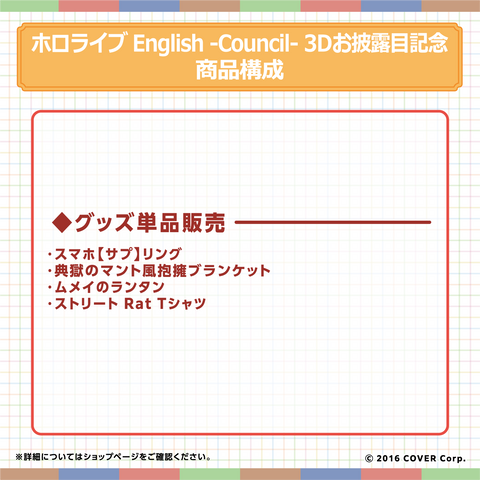The merchandise sales for the 3D debut celebration of hololive English -Council-.