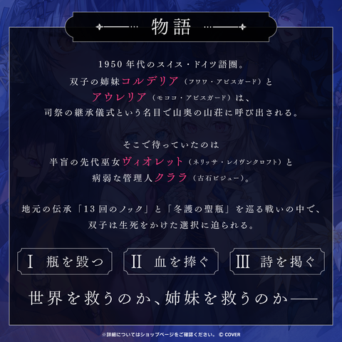 In a snowbound Swiss chalet where the 1950’s linger frozen in time, hololive English -Advent- weaves a tale of choice and sacrifice: When Snow Falls Silent.