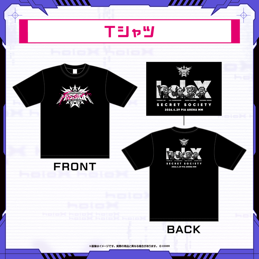 Shipping Period:Shipping by mid-April 2026The concert merch for Secret Society holoX Live 2026 “First MISSION” held on April 29th, 2026.