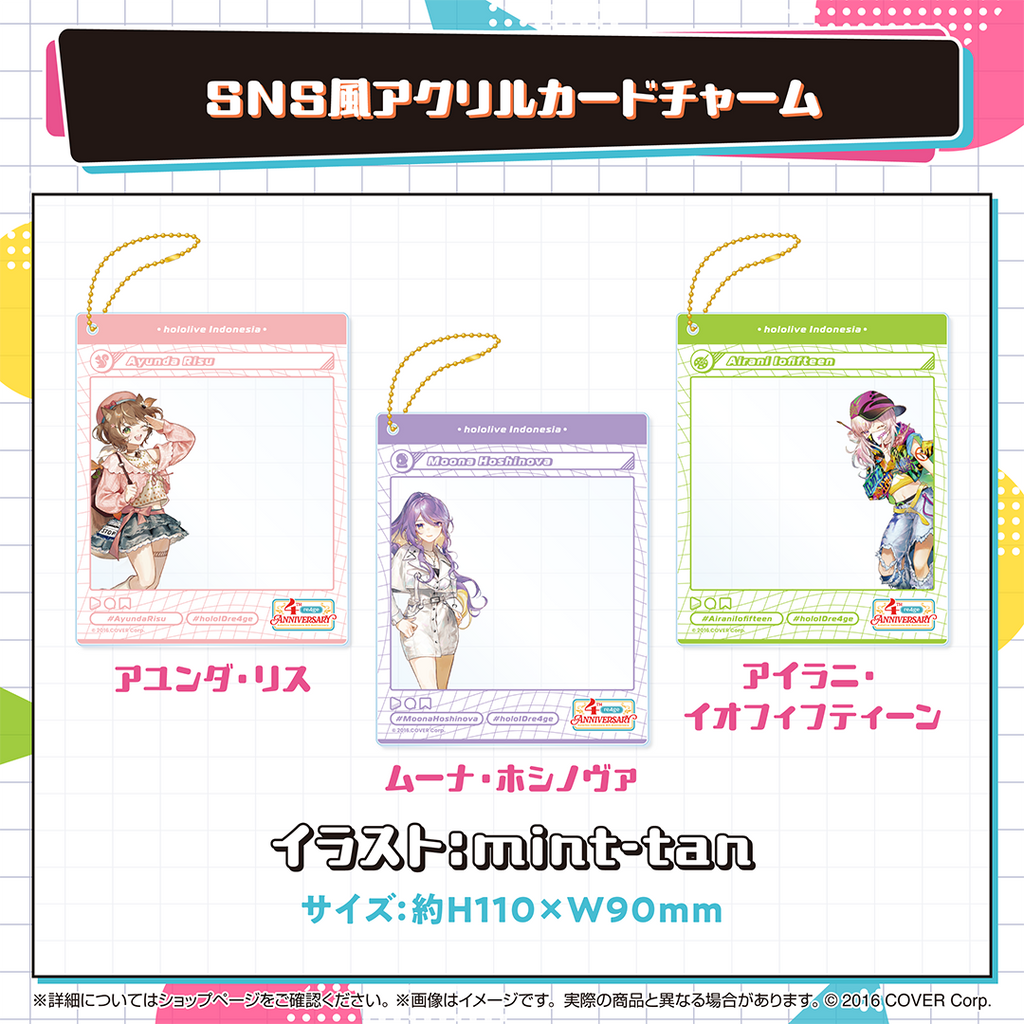 Shipping Period:Estimated around early August to early September 2024.The merchandise sales for the 4th anniversary celebration of hololive Indonesia.