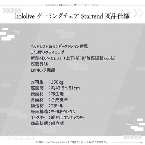 Please click here for the「hololive Gaming Chair Startend」Product list