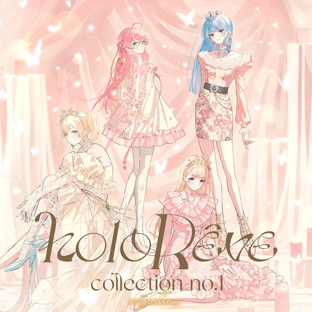 collection no.1 features Sakura Miko, Hoshimachi Suisei, Aki Rosenthal, and Kazama Iroha.