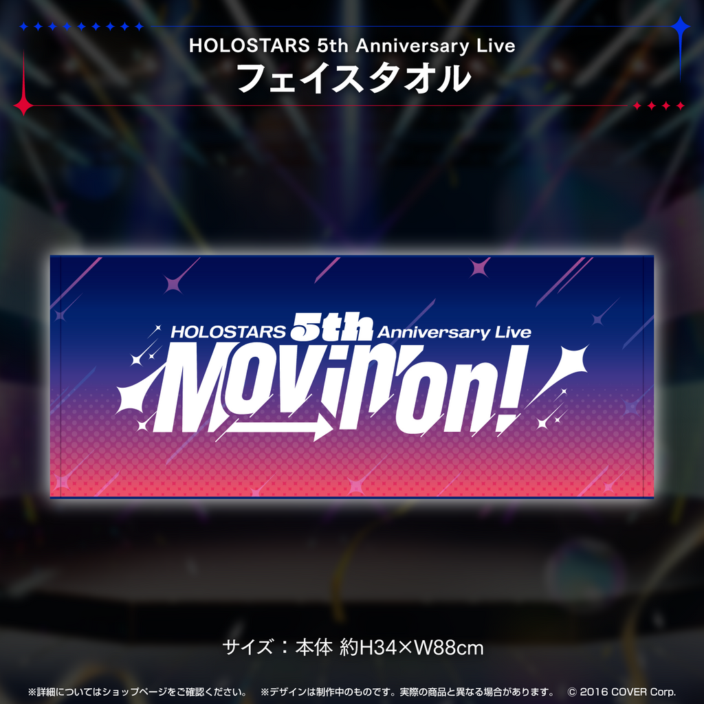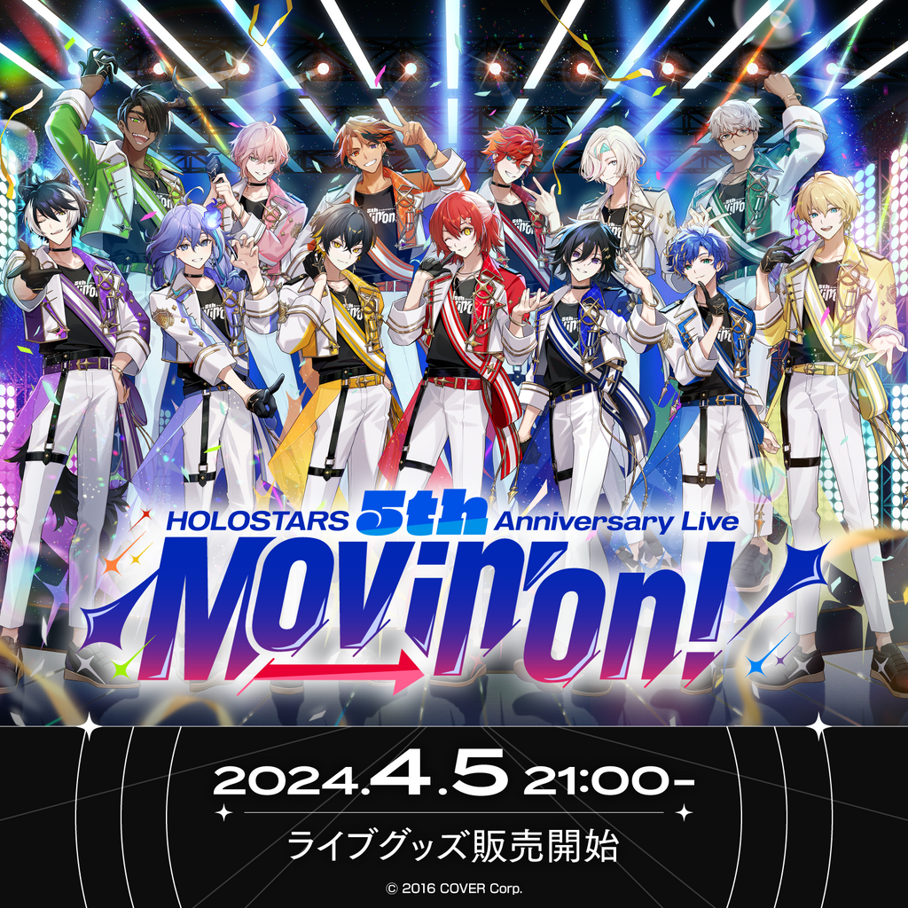 Concert merchandise for "HOLOSTARS 5th Anniversary Live -Movin’ On!-" to be held on June 8th, 2024.