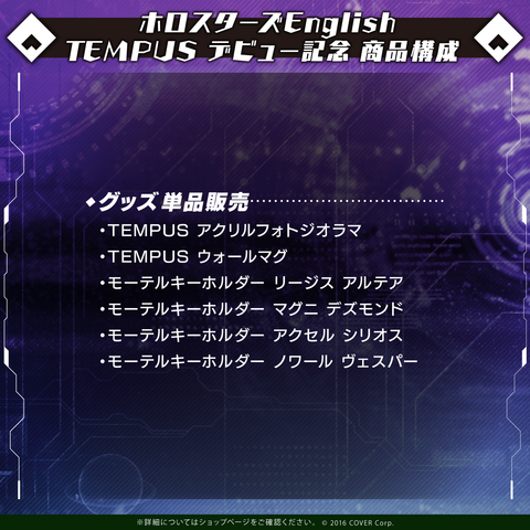 The merch sales to celebrate the debut of TEMPUS from HOLOSTARS English.