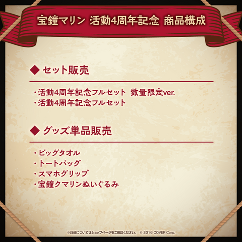 This is the limited edition of the complete set of merch items to celebrate the 4th Anniversary of Houshou Marine.