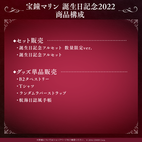 宝鐘マリンの誕生日を記念した数量限定のフルセット商品です。