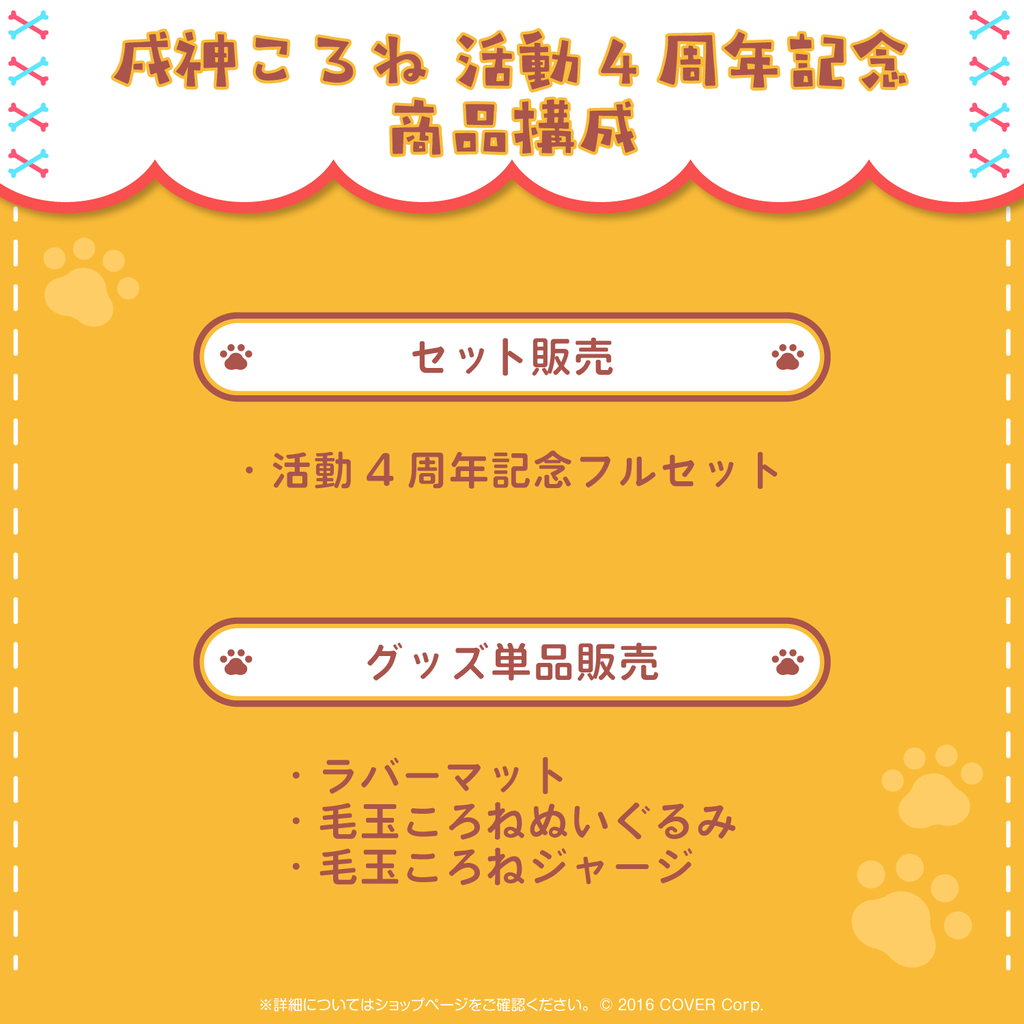戌神ころねの活動4周年を記念したフルセット商品です。