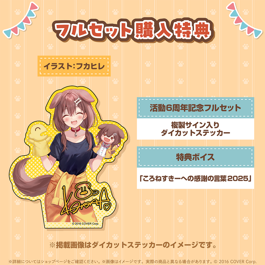 ・Bonus: Die-cut sticker with a duplicated autograph from Inugami Korone (Illustration: フカヒレ)