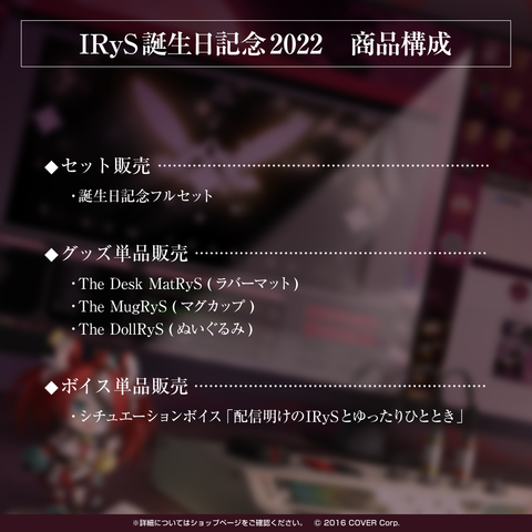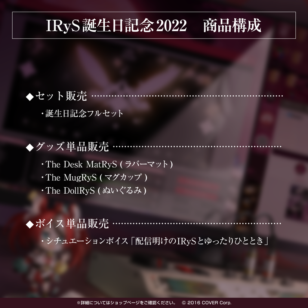 This product is to celebrate the birthday of IRyS from hololive EN.