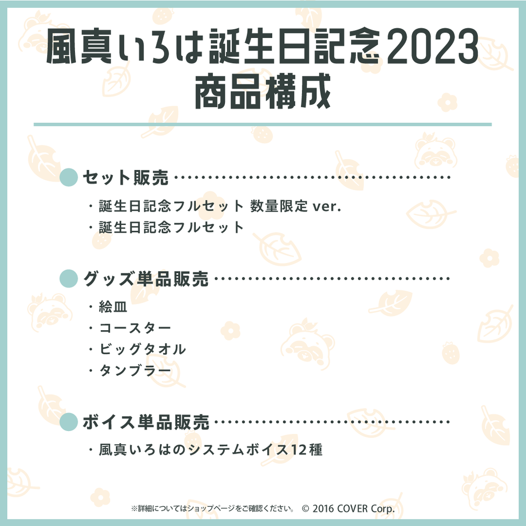 The merchandise sales for the birthday celebration of Kazama Iroha from hololive.