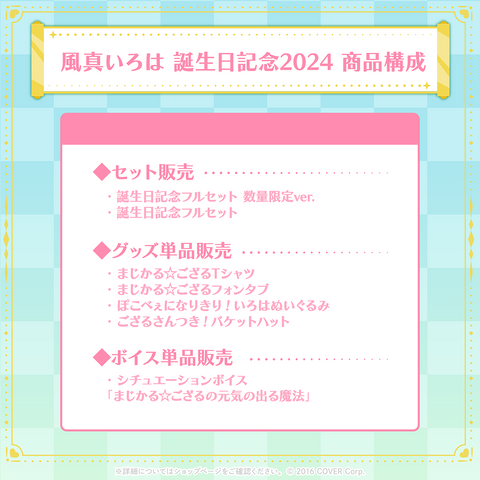 This is the complete set of merch items to celebrate the birthday of Kazama Iroha.
