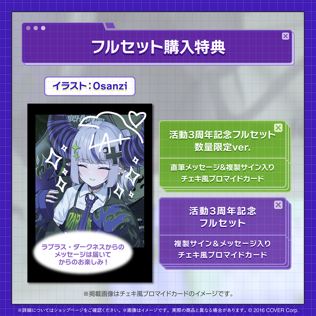 ・Bonus: Cheki-style bromide card with a duplicated autograph and message from La+ Darknesss. (Illustration: Osanzi)