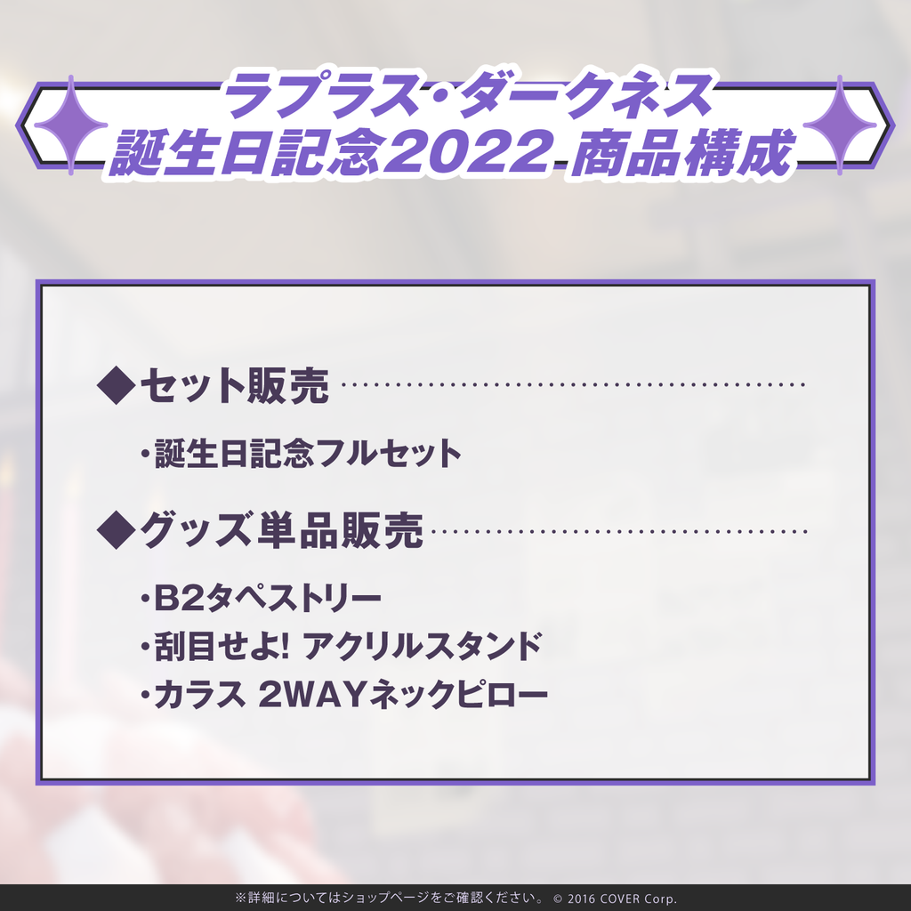 ラプラス・ダークネスの誕生日を記念したフルセット商品です。