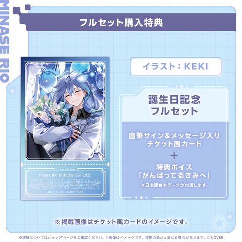 ・Bonus: Ticket-style card with a handwritten autograph and message from Minase Rio (Illustration: KEKI)