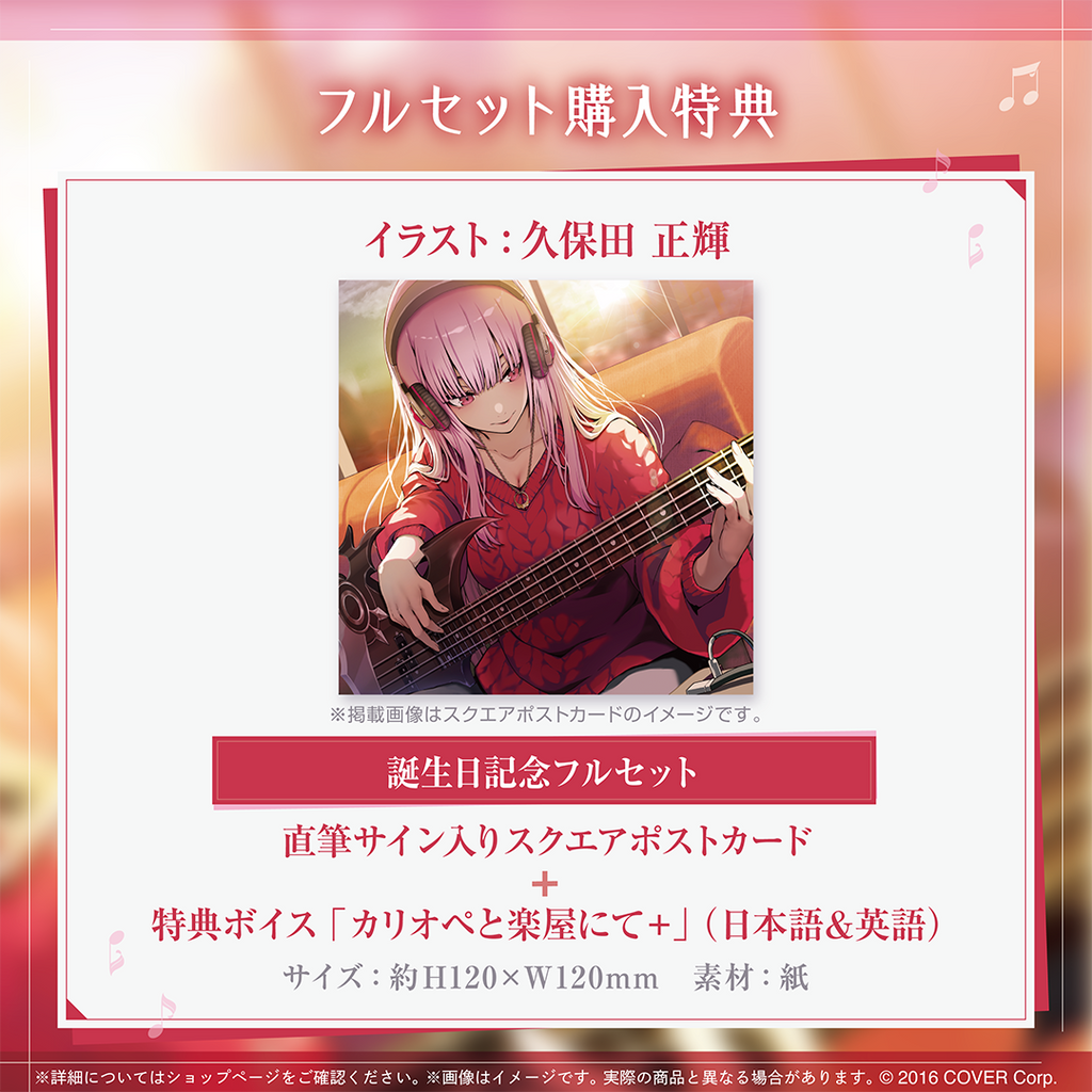 ・Bonus: Square postcard with a handwritten autograph from Mori Calliope. (Illustration: 久保田 正輝)