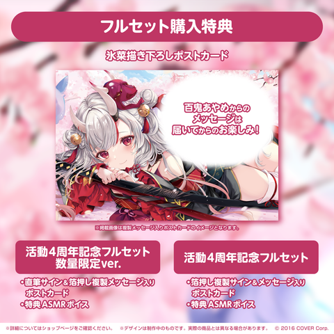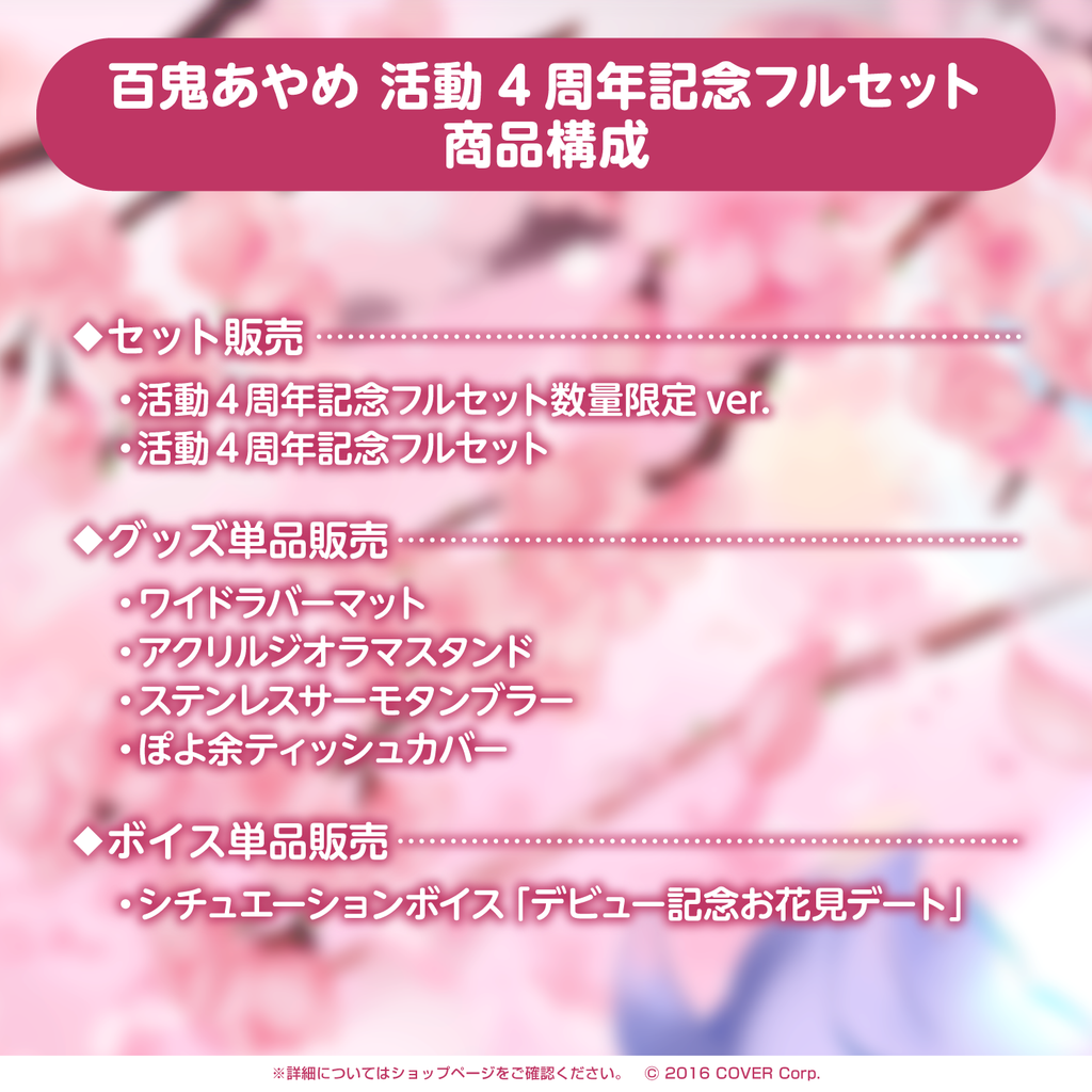 百鬼あやめの活動4周年を記念した数量限定のフルセット商品です。