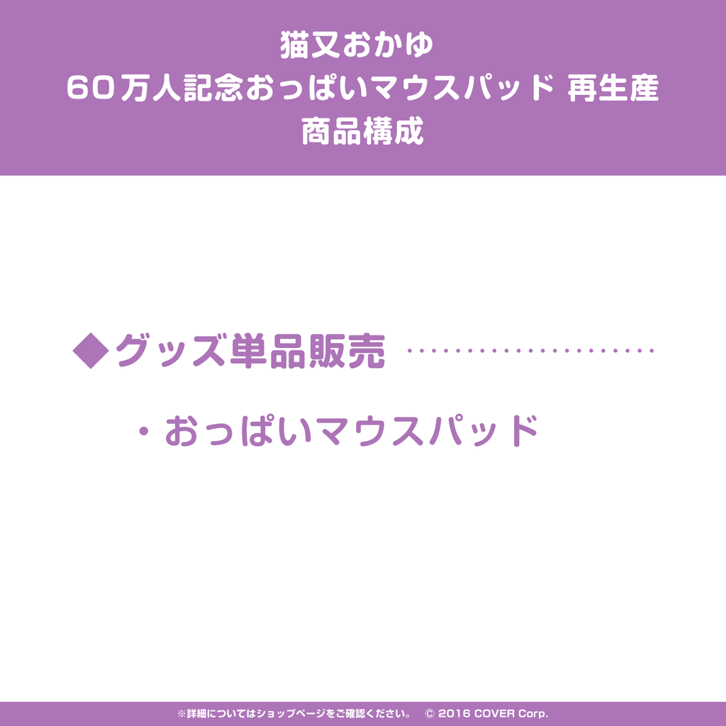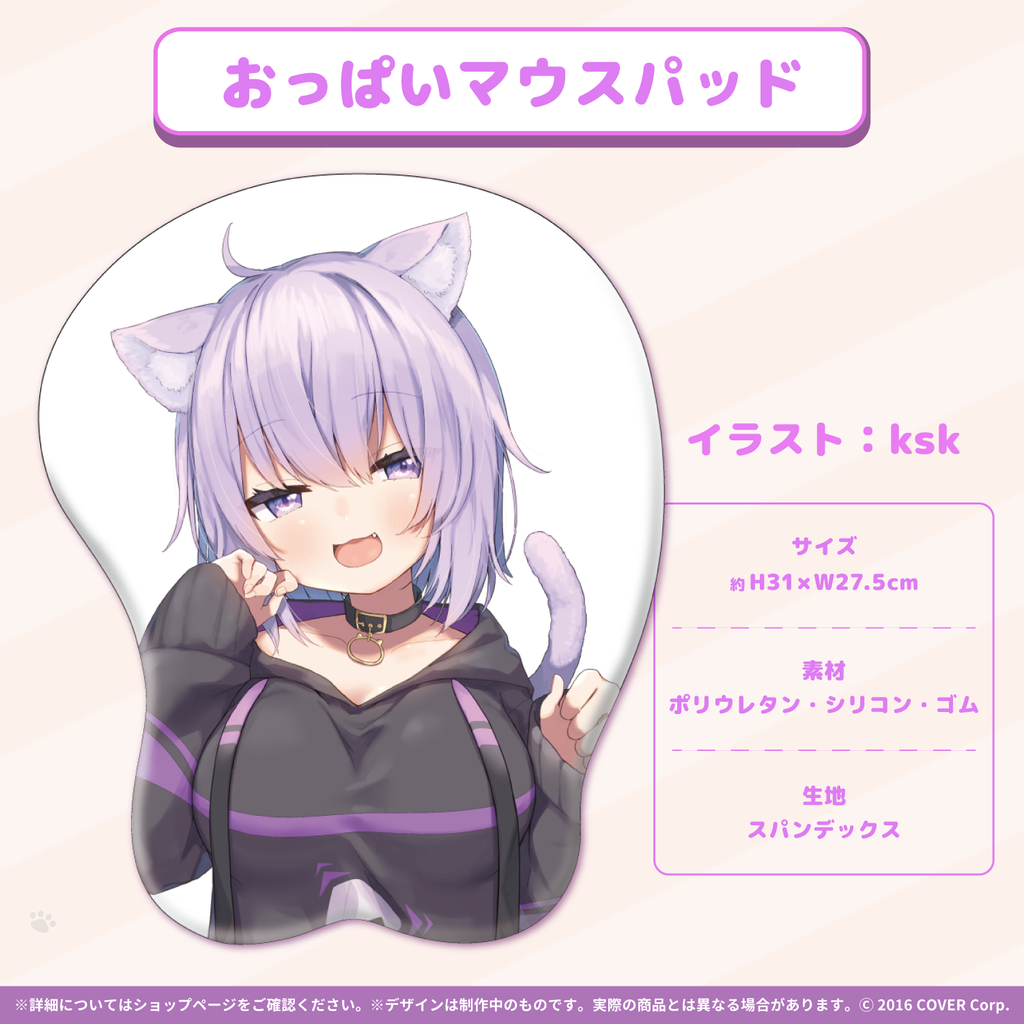 The resale of the item ""Oppai Mouse Pad"" from Nekomata Okayu's 600k Subscriber Celebration.