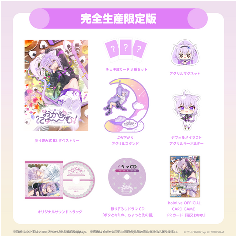 Shipping Period:Estimated around February 27, 2025 to March 6, 2025.The Production Limited hololive Official Edition of "Okayunyumu!" starred and directed by Nekomata Okayu of hololive production.