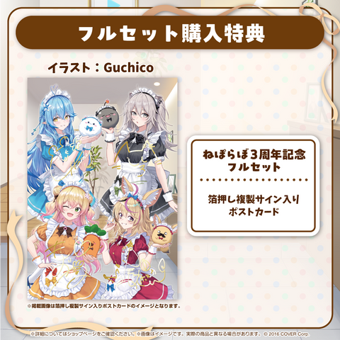 ・Bonus: Postcard with duplicated foil-stamped autographs from NePoLaBo. (Illustration: Guchico)