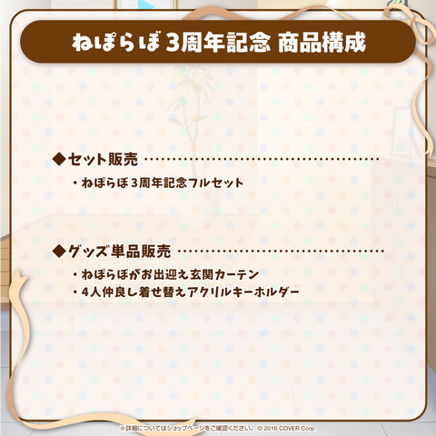 Shipping Period:Estimated around early June to early July 2024.The merchandise sales for the 3rd anniversary celebration of the unit NePoLaBo from hololive.