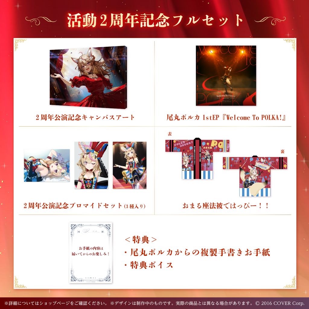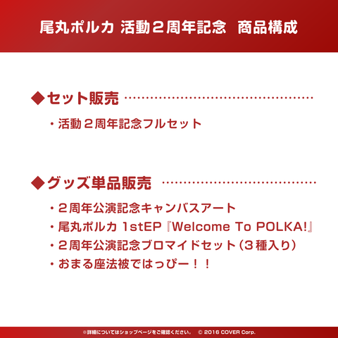 尾丸ポルカの活動2周年を記念したフルセット商品です。