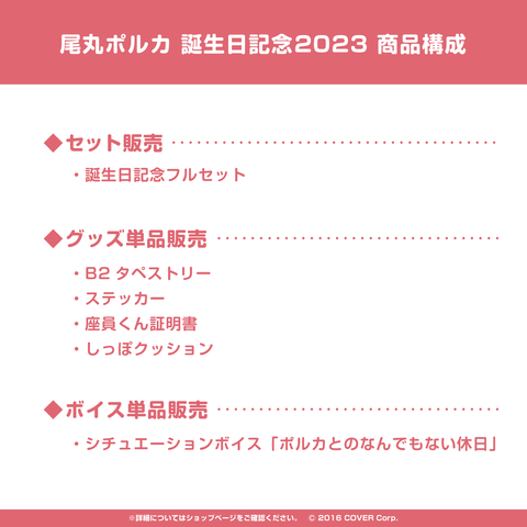 尾丸ポルカの誕生日を記念したフルセット商品です。