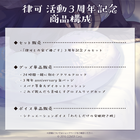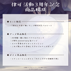 律可の活動3周年を記念したフルセット商品です。